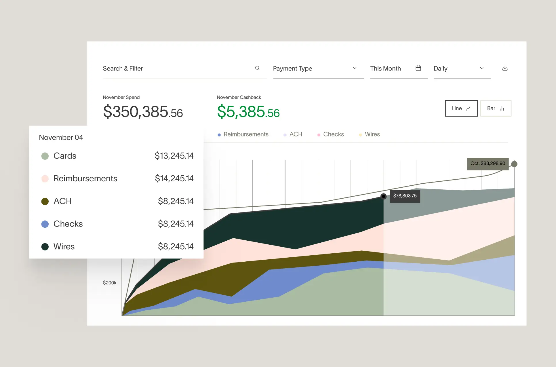 Our intuitive dashboards provide real-time visibility into liabilities, spend and cash available.